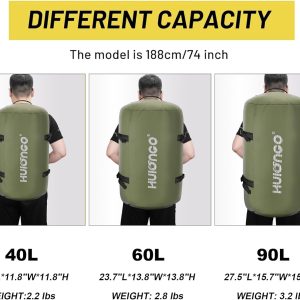 - Expansive Capacity for Extended Adventures: Designed for the modern traveler or sports enthusiast. our 40L/60L/90L large duffle bag backpack is crafted to accommodate 3-8 days’ worth of gear or bulky sports equipment. With dimensions of 19.7L*11.8W*11.8H / 23.7L*13.8W*13.8H / 27.5L*15.7W*15.7H . it’s the perfect balance of space and portability.