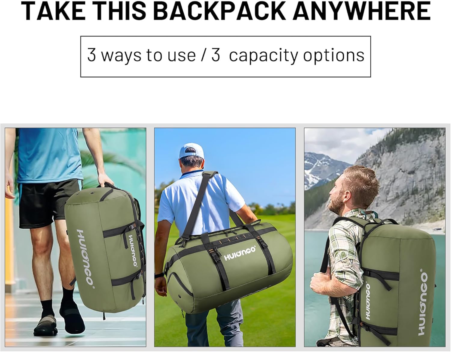 - Multi-Functional Design for Every Adventure: Our duffle bag features a large D-shaped opening with two-way zippers for easy access and hassle-free packing. Its convertible design. combined with its roomy capacity and robust construction. makes it the go-to choice for the gym. sports events. travel. weekend getaways. hiking. camping. outdoor adventures. and everyday use.