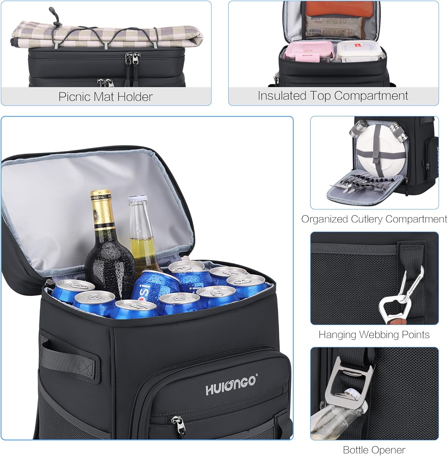 Hulongo Large Waterproof Insulated Cooler Backpack for Men & Women
