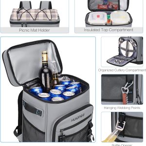 - Spacious Capacity: With dimensions measuring 17.7”x12.2”x7.9” (H x L x W). our cooler backpack can accommodate up to 35 cans (330 ml). It offers enough space to pack meals. tall beverages. snacks. and other necessary items. It makes for a perfect gift for both men and women due to its large capacity and versatility