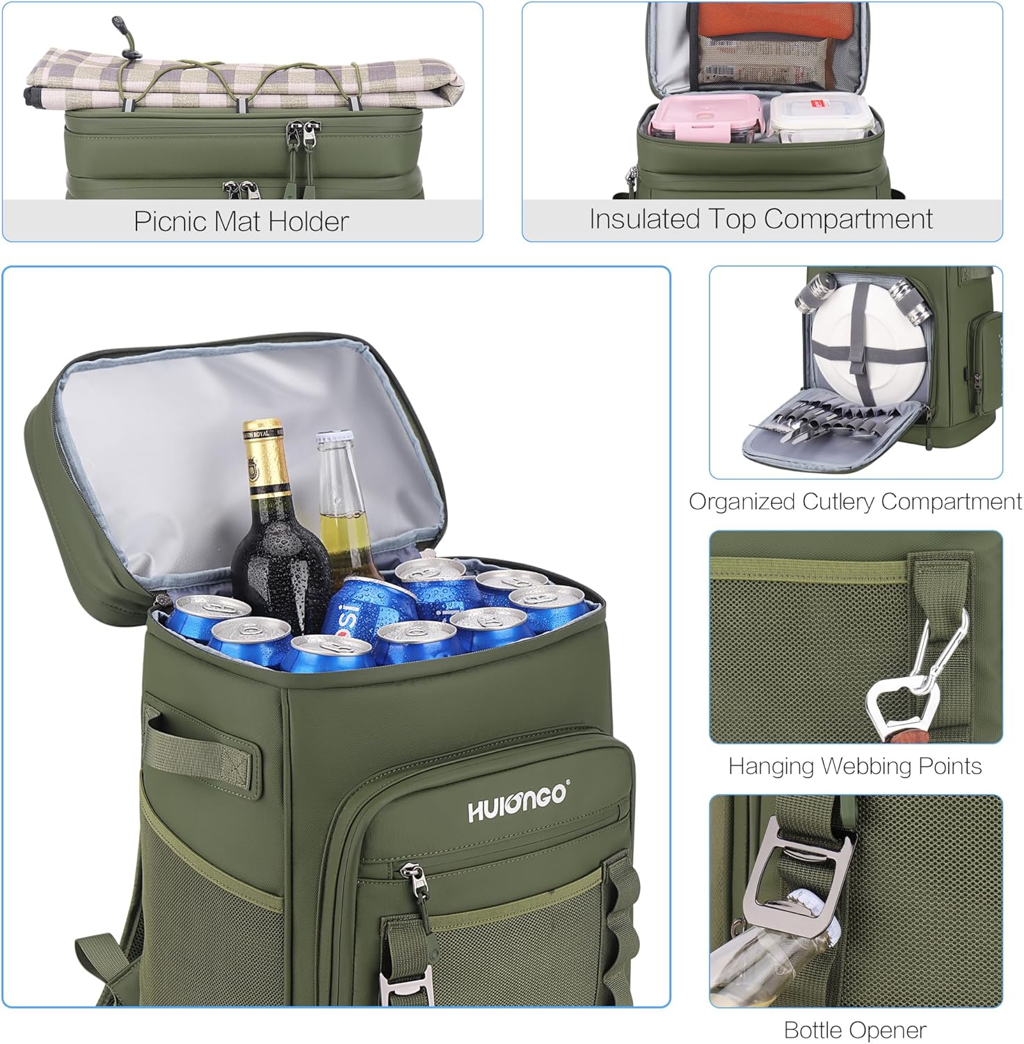 Hulongo Large Waterproof Insulated Cooler Backpack for Men & Women